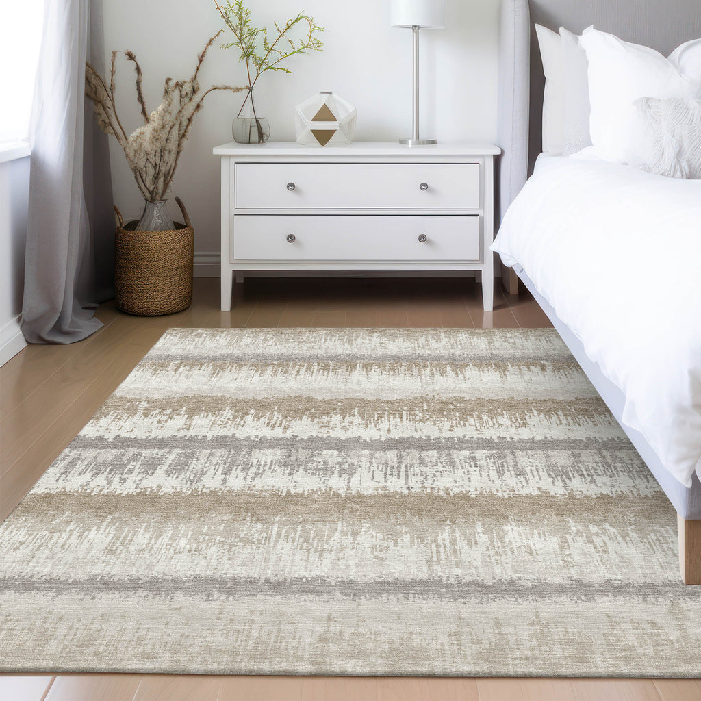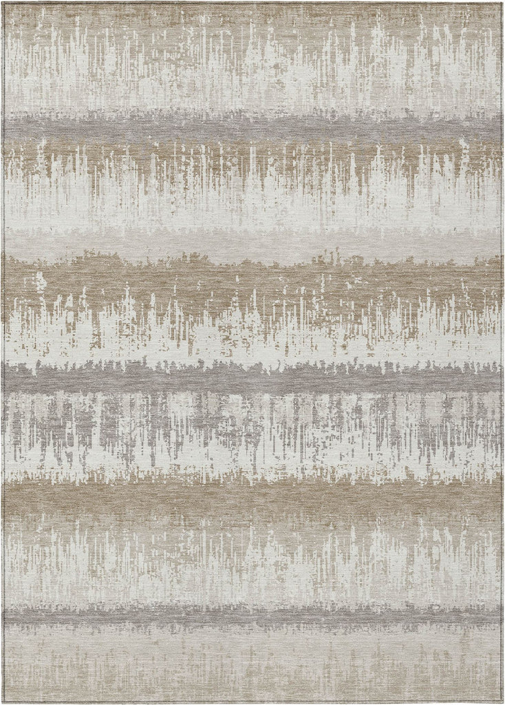 The sleek horizontal stripes and subtle drip effects of our transitional area rug will elevate your homes aesthetic with modern sophistication. This versatile design seamlessly integrates into any space. Crafted to last, its UV stabilized for use in both indoor and outdoor environments and boasts an ultra-thin profile for convenience. Additionally, the machine-washable material and pet-friendly quality make it an ideal choice for families looking for both style and practicality.