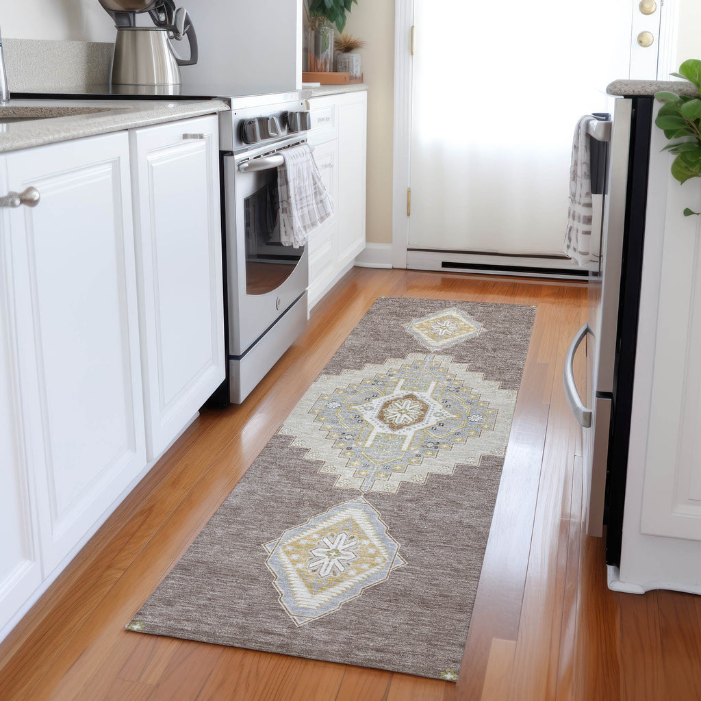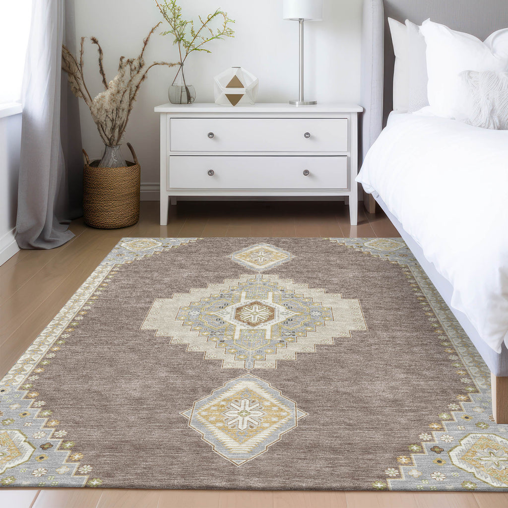 Enhance your decor with our oriental area rug, featuring a prominent center medallion and sophisticated corner motifs that create a timeless sarouk pattern. Designed for versatility, its UV stabilized for optimal use both indoors and out. The ultra-thin design ensures it fits neatly anywhere, and being machine-washable, its a breeze to keep clean. This family and pet-friendly rug is a perfect blend of tradition and practicality.