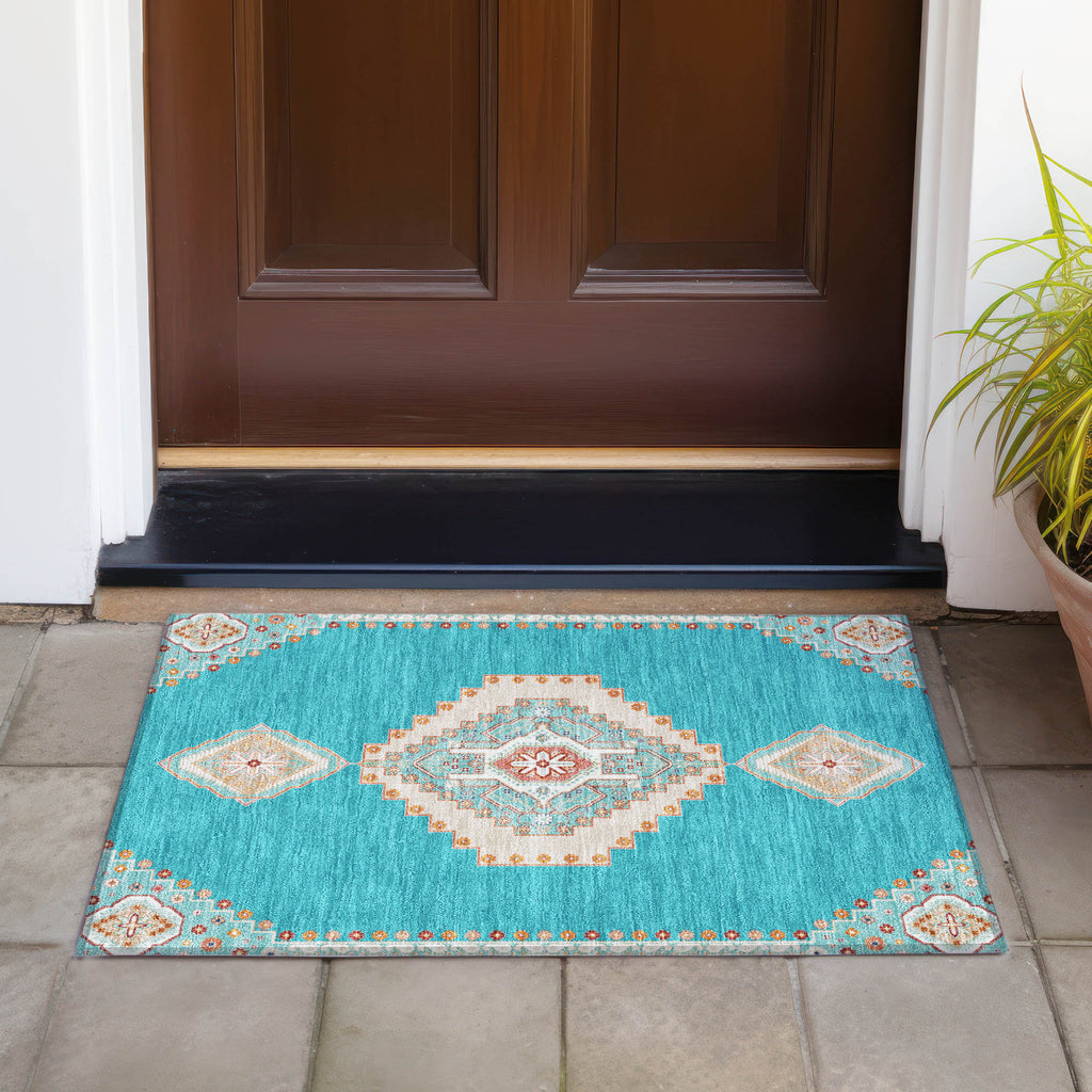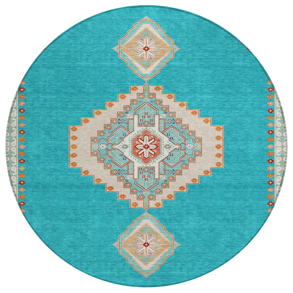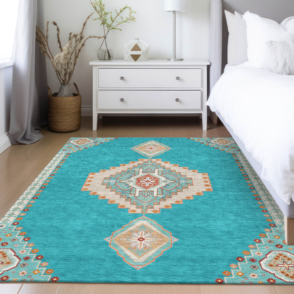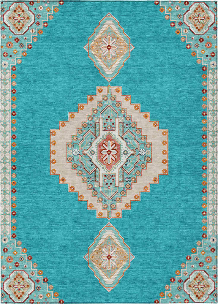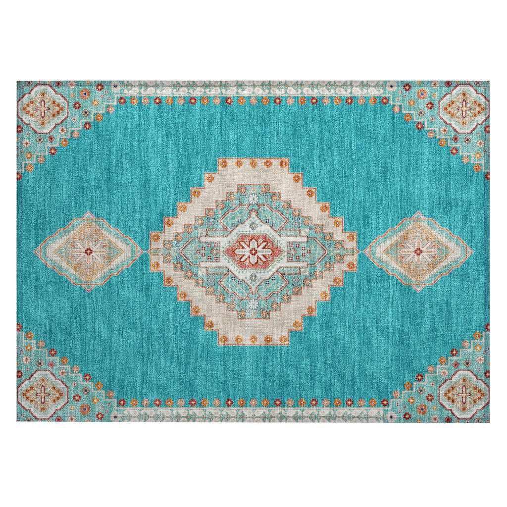 Enhance your decor with our oriental area rug, featuring a prominent center medallion and sophisticated corner motifs that create a timeless sarouk pattern. Designed for versatility, its UV stabilized for optimal use both indoors and out. The ultra-thin design ensures it fits neatly anywhere, and being machine-washable, its a breeze to keep clean. This family and pet-friendly rug is a perfect blend of tradition and practicality.