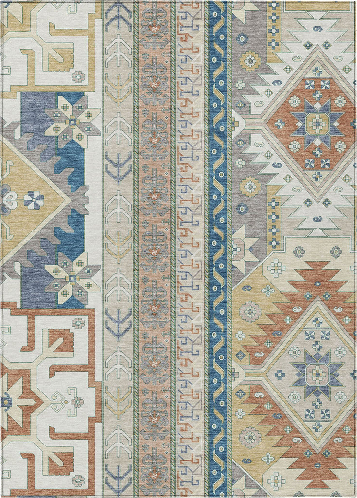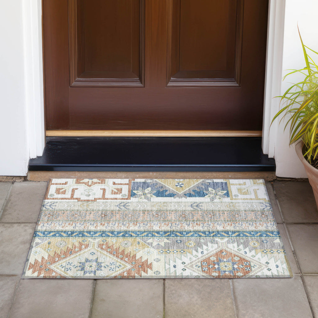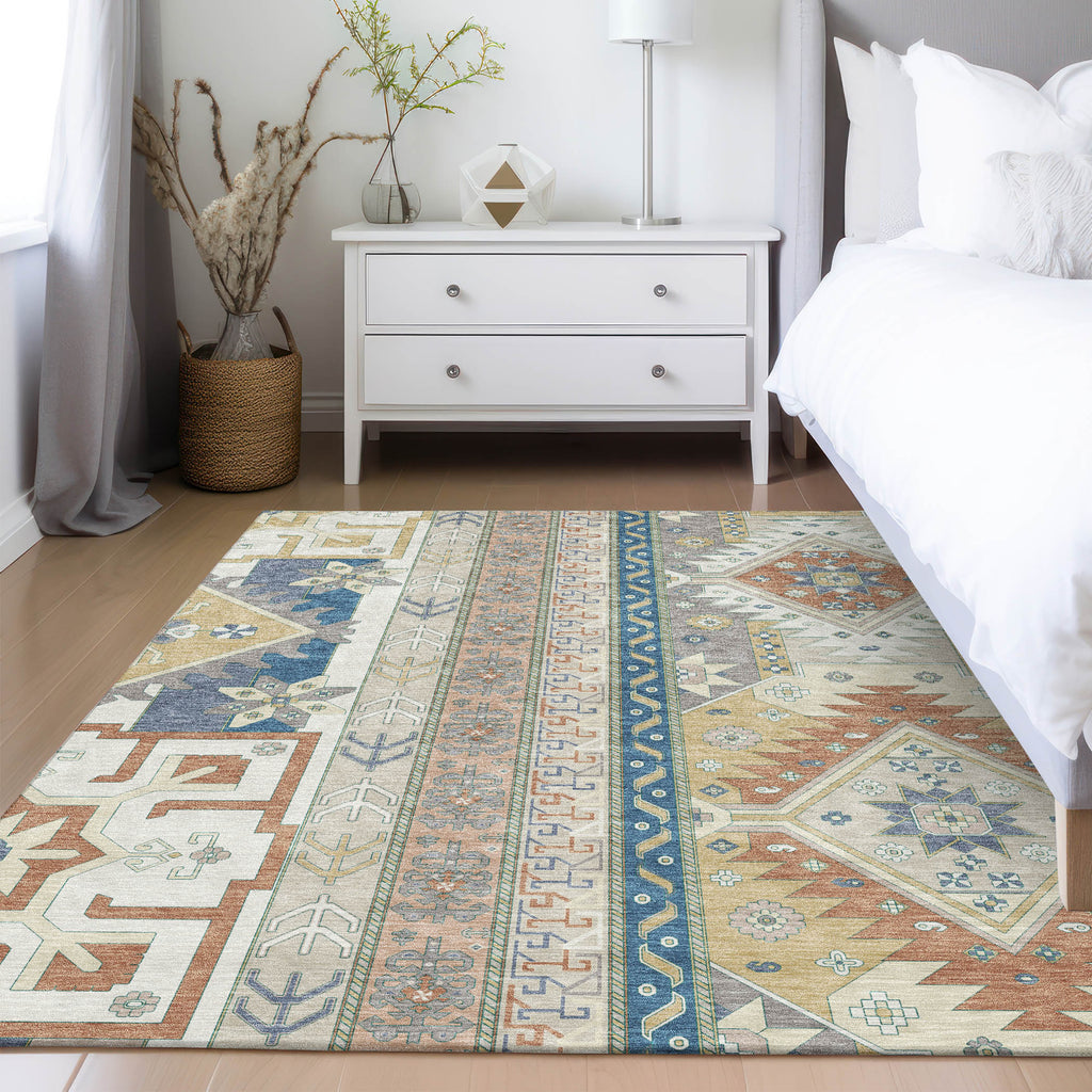 Bring a touch of bohemian elegance to your floors with our Aztec-inspired area rug, featuring a transitional design that complements any decor. The vivid motifs add a distinctive charm to your living space, crafted to thrive both indoors and outdoors with UV stabilization. The ultra-thin design allows for effortless placement and layering, while the convenience of being machine-washable ensures easy care. Perfect for homes with pets and children, this rug combines practicality with artisanal style.