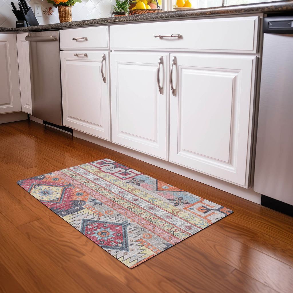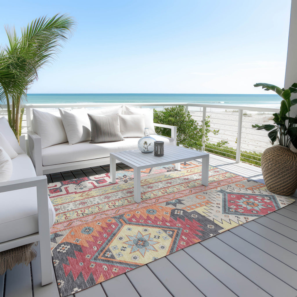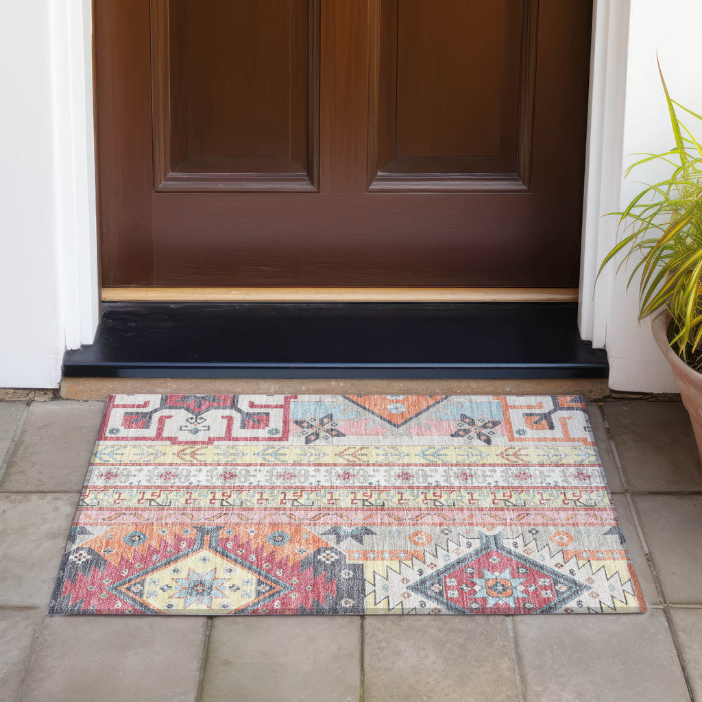 Bring a touch of bohemian elegance to your floors with our Aztec-inspired area rug, featuring a transitional design that complements any decor. The vivid motifs add a distinctive charm to your living space, crafted to thrive both indoors and outdoors with UV stabilization. The ultra-thin design allows for effortless placement and layering, while the convenience of being machine-washable ensures easy care. Perfect for homes with pets and children, this rug combines practicality with artisanal style.
