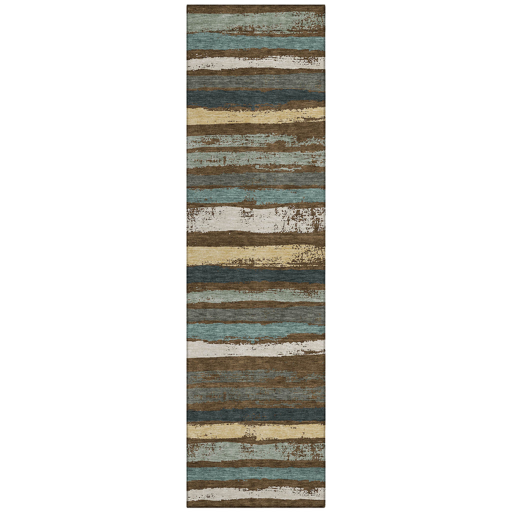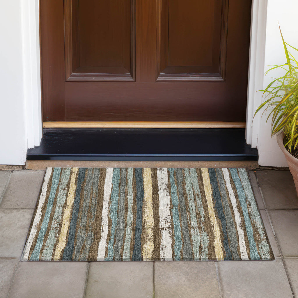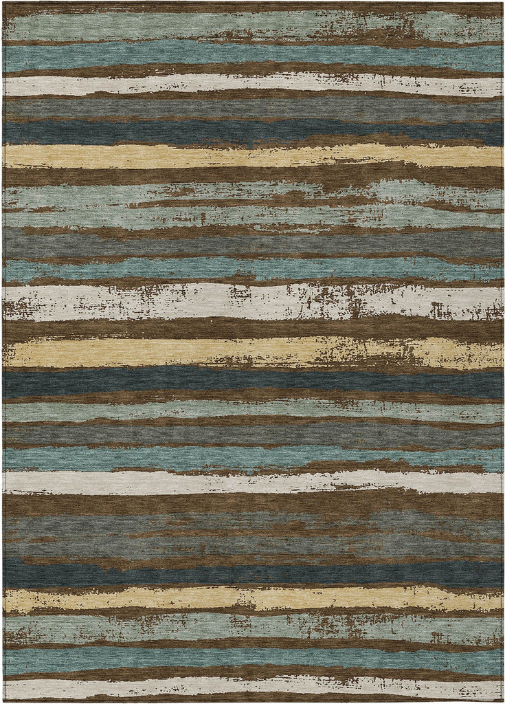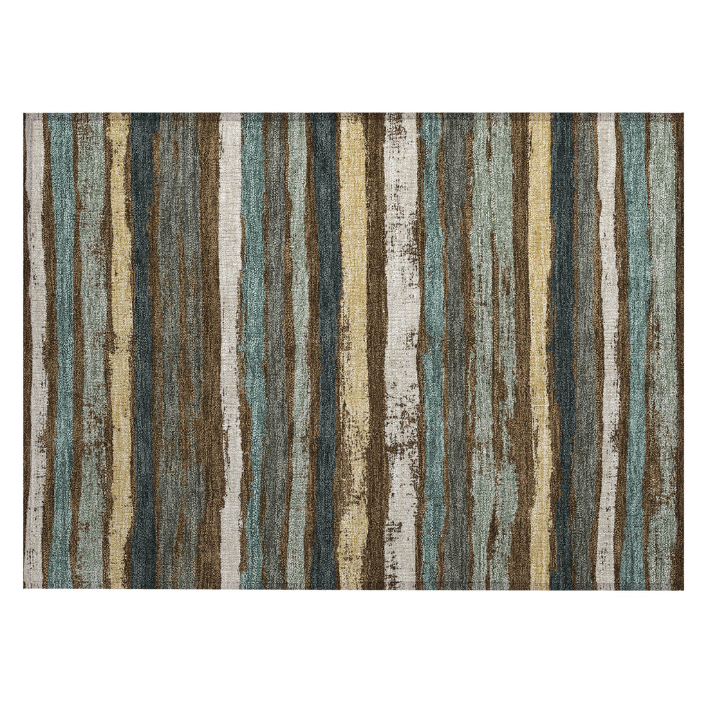 Step into comfort with our transitional area rug, where naturally drawn stripes create a cozy, homey atmosphere. This beautifully striped rug is perfect for any setting, effortlessly adding a touch of warmth to your space. It's UV stabilized to withstand the elements, whether used inside or out, and its ultra-thin design makes it easy to place anywhere. Family and pet friendly, and easy to clean thanks to its machine-washable fabric, it's designed for everyday living.