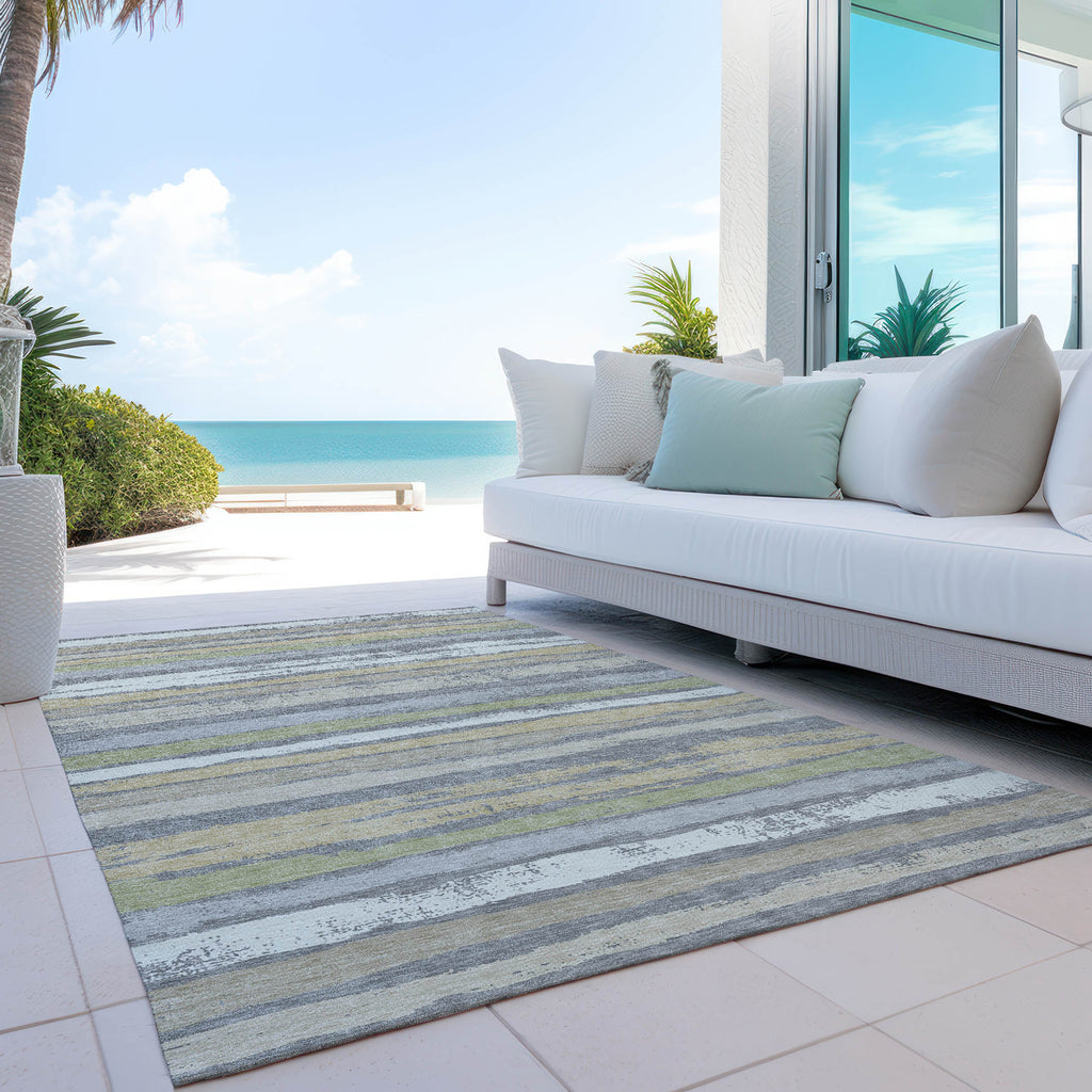 Step into comfort with our transitional area rug, where naturally drawn stripes create a cozy, homey atmosphere. This beautifully striped rug is perfect for any setting, effortlessly adding a touch of warmth to your space. It's UV stabilized to withstand the elements, whether used inside or out, and its ultra-thin design makes it easy to place anywhere. Family and pet friendly, and easy to clean thanks to its machine-washable fabric, it's designed for everyday living.