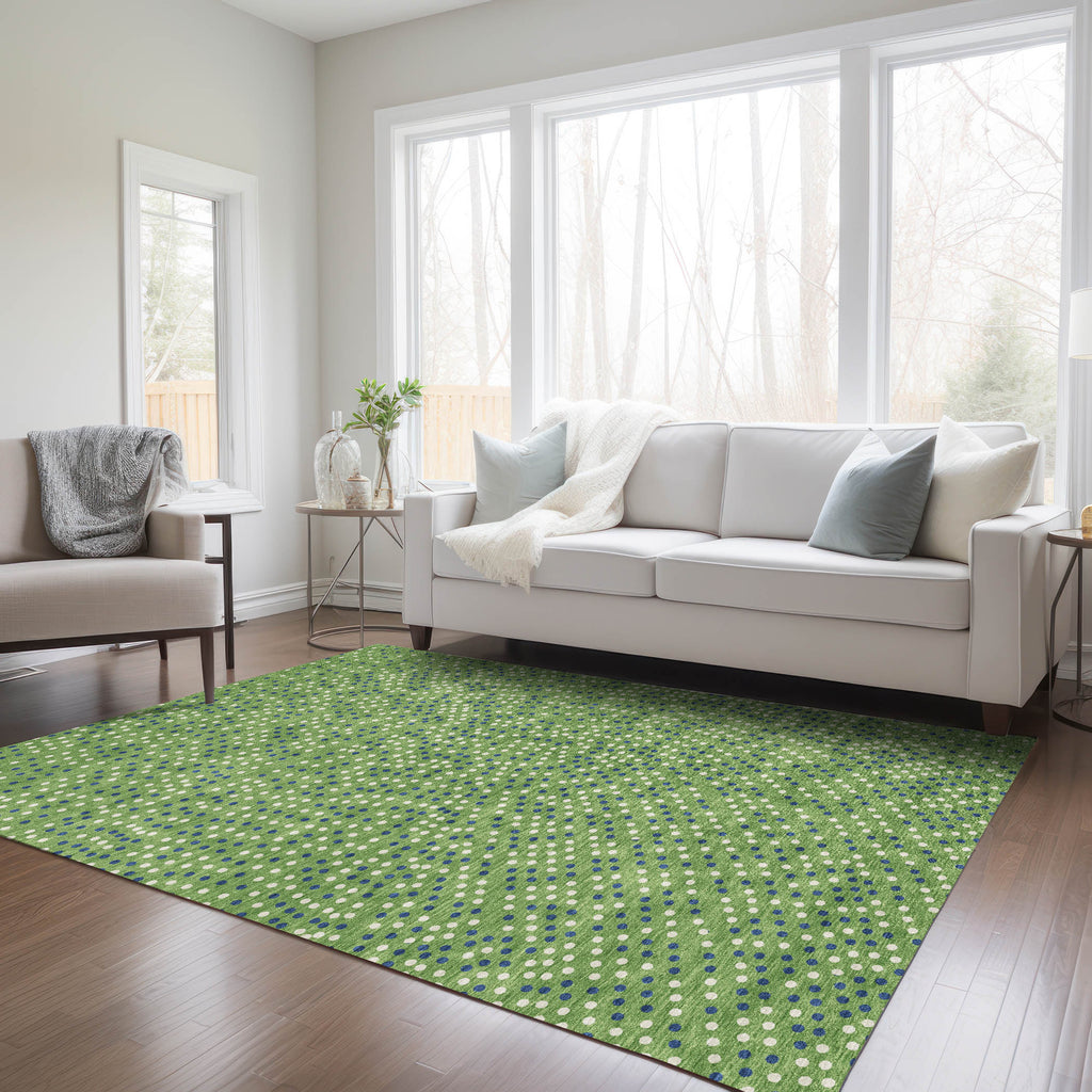 Step into the future of home decor with our transitional area rug, where tiny dot circles come together to form an eye-catching 3D effect. This distinctive design breathes life into any room, marrying modern aesthetics with traditional charm. UV stabilized to withstand the elements, this ultra-thin rug is perfect for high-traffic areas, indoors or out. Machine-washable and built to accommodate the needs of a busy household, its ideal for families and pet owners alike.