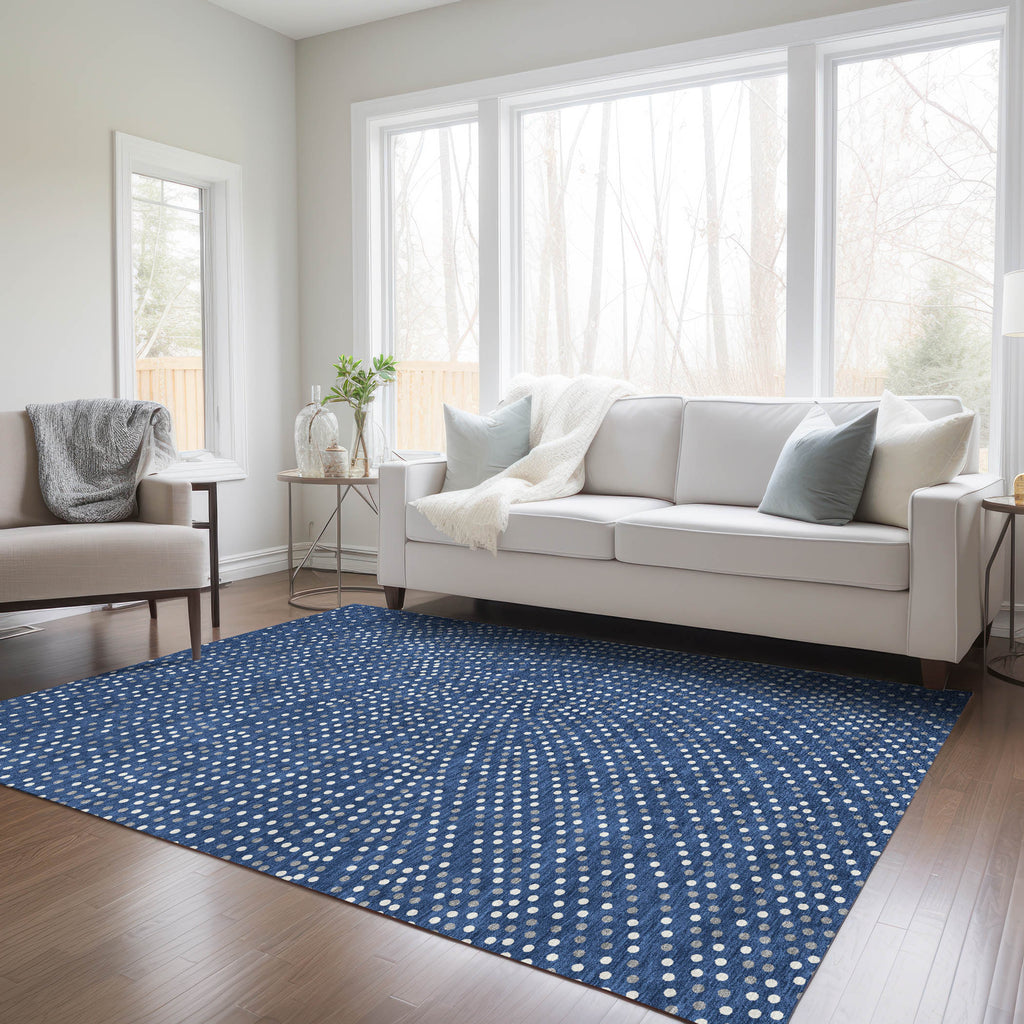 Step into the future of home decor with our transitional area rug, where tiny dot circles come together to form an eye-catching 3D effect. This distinctive design breathes life into any room, marrying modern aesthetics with traditional charm. UV stabilized to withstand the elements, this ultra-thin rug is perfect for high-traffic areas, indoors or out. Machine-washable and built to accommodate the needs of a busy household, its ideal for families and pet owners alike.