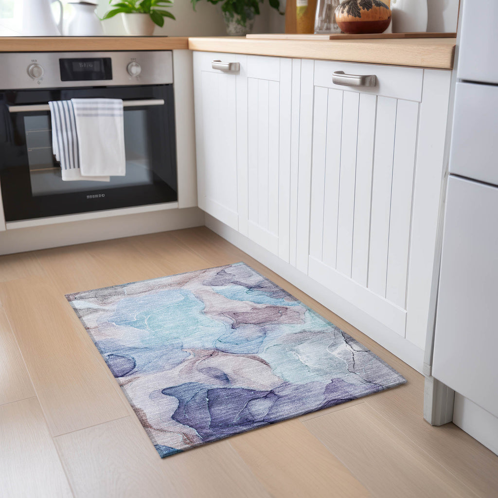 Enrich your home with our soft watercolor-inspired transitional area rug. The beautiful hues add a touch of elegance to any room. This rug is UV stabilized for indoor and outdoor use, and the ultra-thin construction includes a non-skid backing, eliminating the need for a separate rug pad. Plus, it's machine-washable and perfect for families with pets.