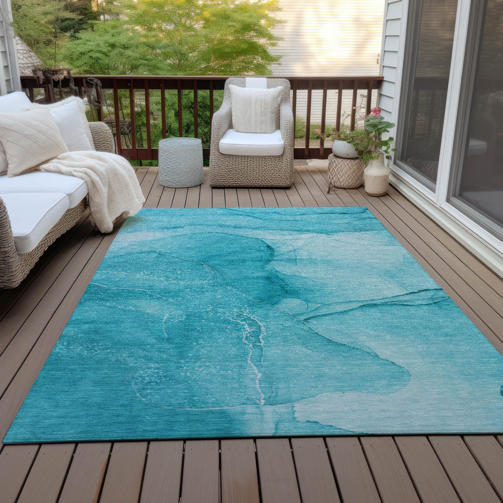 Treat your home to our transitional area rug, crafted with a blend of soft watercolors for a tonal modern design that enchants and calms. Ideal for indoor or outdoor use, this UV-stabilized rug boasts an ultra-thin construction with a non-skid backing, thus eliminating the need for an additional rug pad. It's machine-washable, family, and pet-friendly, making it the perfect fit for your home.