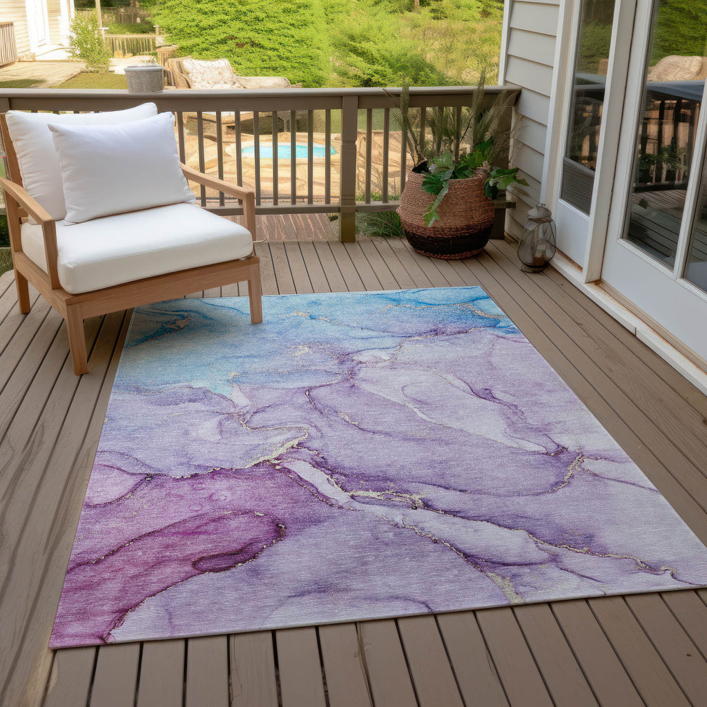 Adorn your space with the tranquil blend of delicate hues on our transitional area rug. Crafted for both indoor and outdoor use, it is UV stabilized and has an ultra-thin construction that incorporates a non-skid backing, eliminating the need for a separate rug pad. Being machine-washable, it provides convenience to families and pet owners.