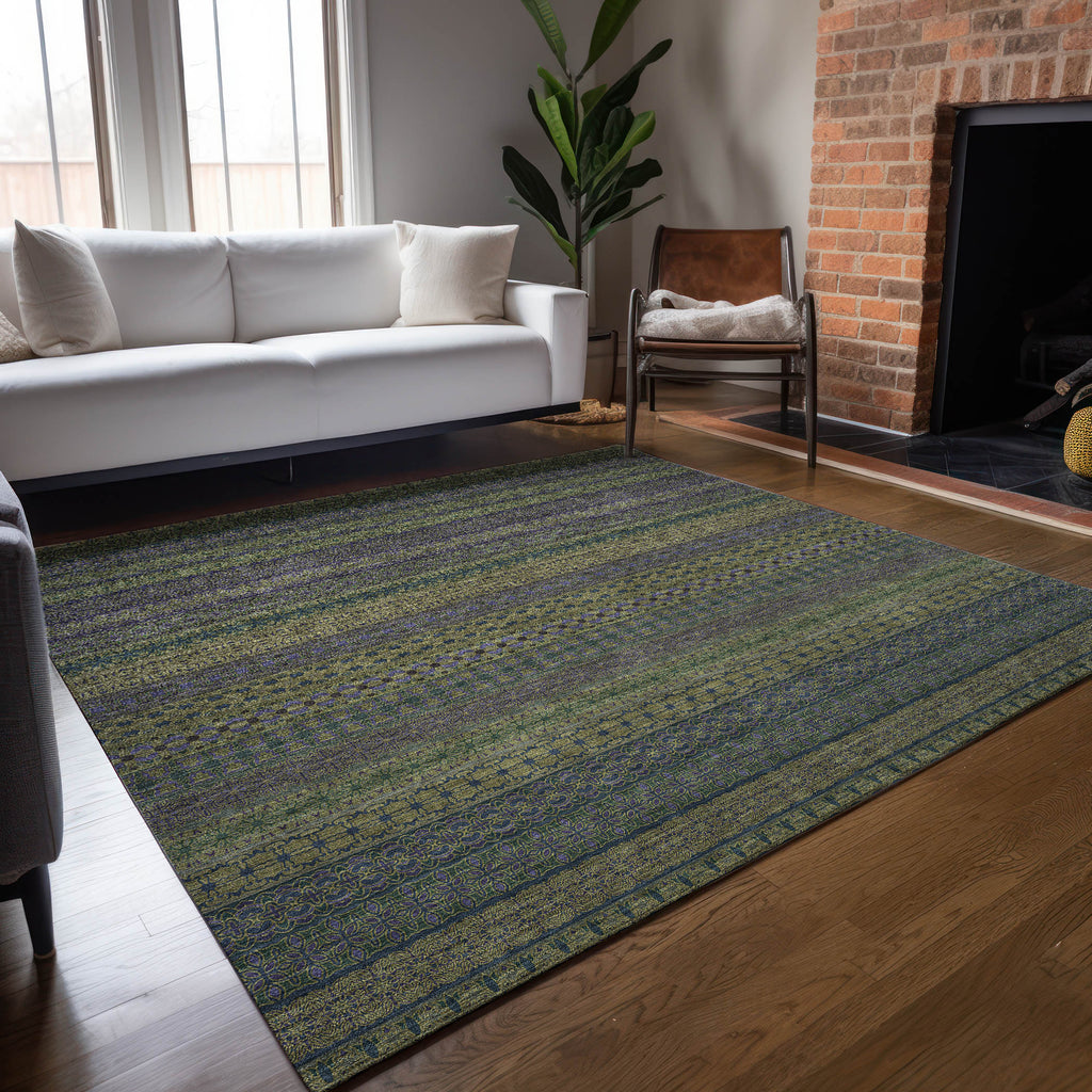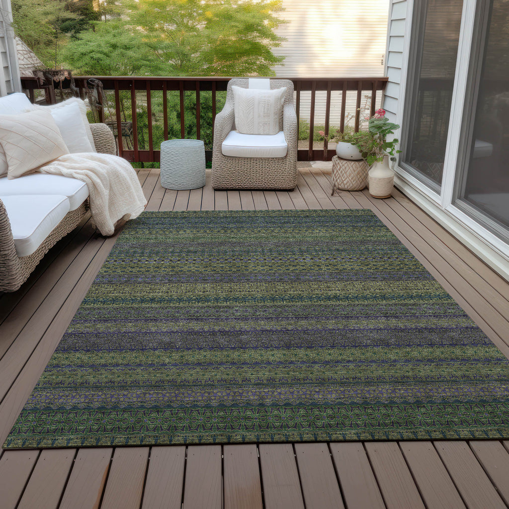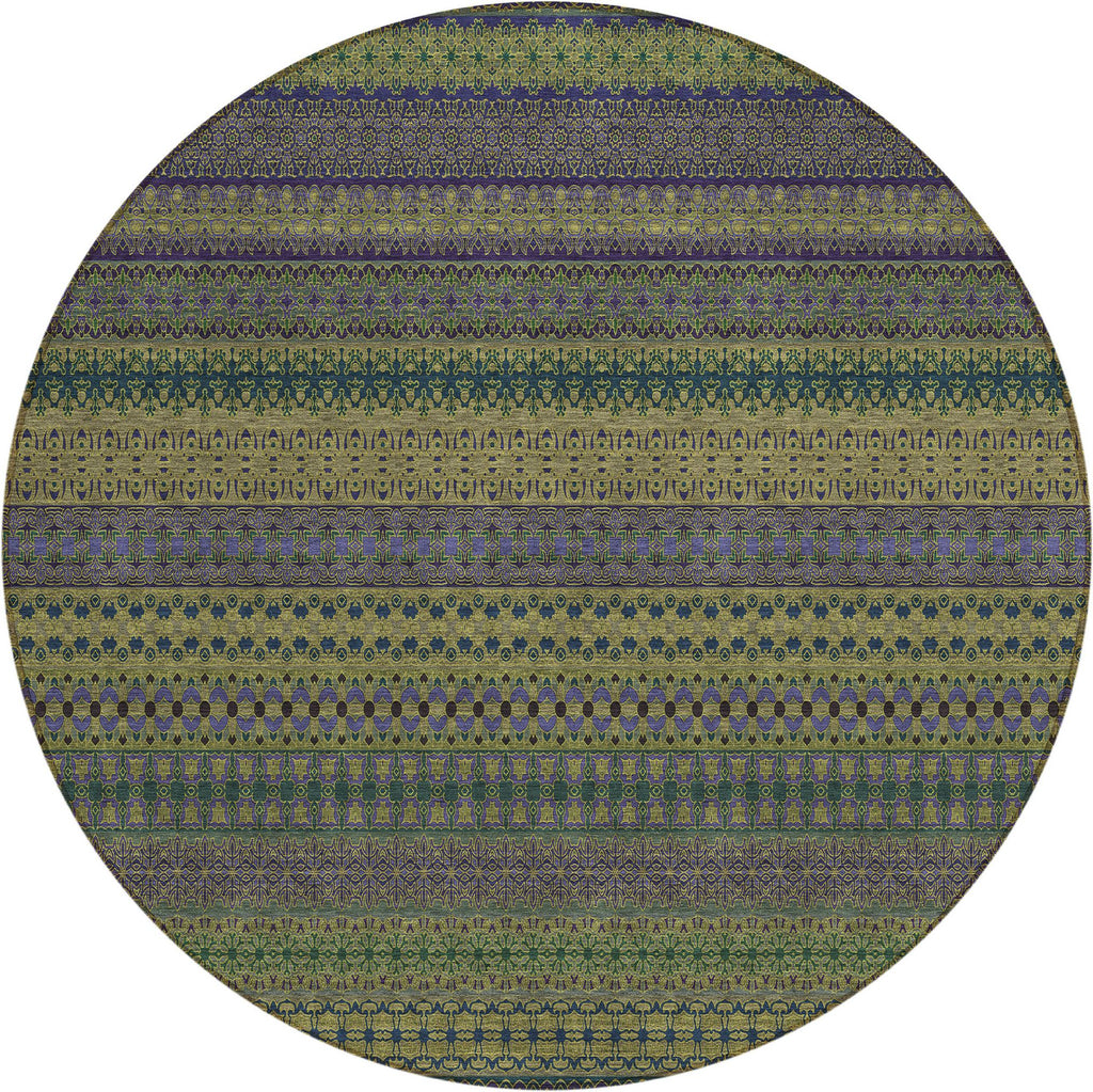 Create a whimsical atmosphere with our area rug, where an eclectic mix of shapes and motifs brings personality to your floor. This transitional striped rug is a conversation starter. With UV stabilization, it can be confidently used indoors or outdoors. The ultra-thin construction includes an incorporated non-skid backing, providing stability and eliminating the need for a separate rug pad. It's machine-washable and designed to be family and pet-friendly, making it a practical choice for busy households.