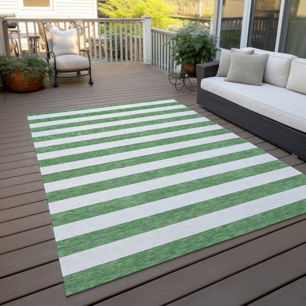 Make a bold statement with our area rug, showcasing bold thick cabana lines that create a sense of energy and visual interest. This transitional striped rug is a unique and eye-catching addition to any room. With UV stabilization, it can be confidently used indoors or outdoors, allowing for versatile placement. The ultra-thin construction includes an incorporated non-skid backing, ensuring stability and eliminating the need for a separate rug pad. It's machine-washable and designed to be family and pet-friendly, making it a practical choice for busy households.