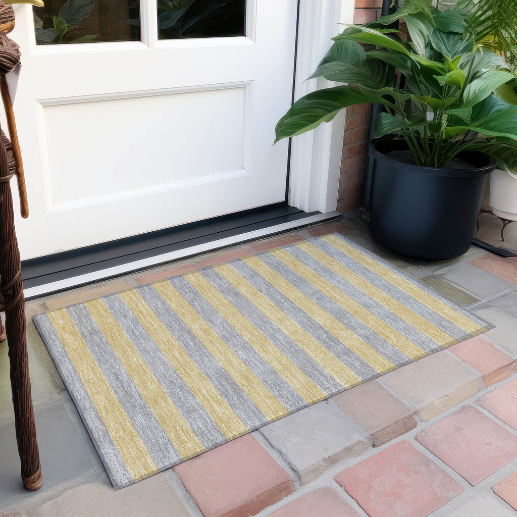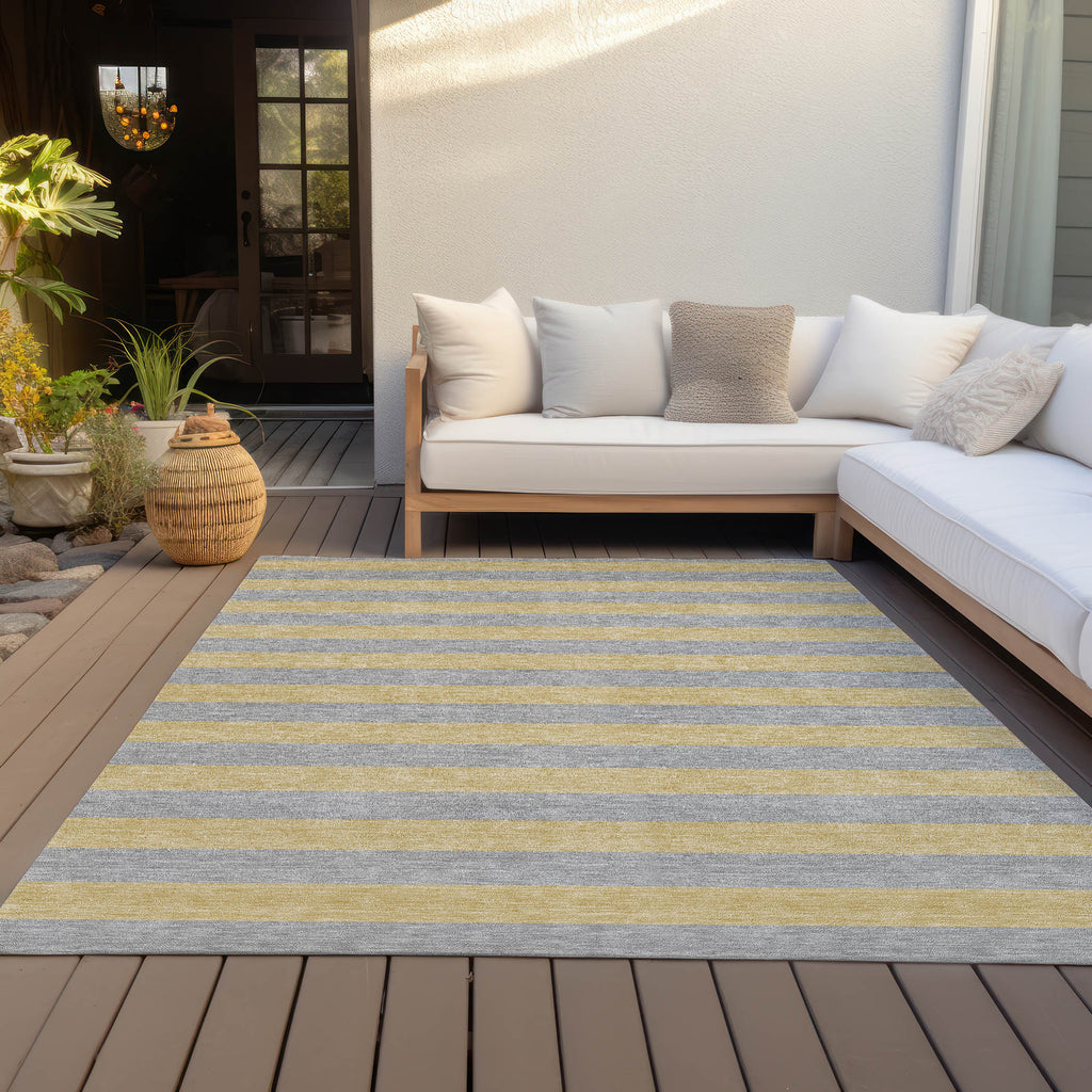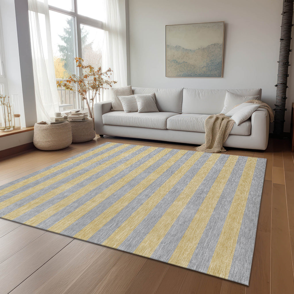 Introduce an effortless addition to your decor with our area rug, featuring two color horizontal thick lines that create a visually appealing element. This transitional striped rug seamlessly blends into any space. With UV stabilization, it can be confidently used indoors or outdoors, providing versatility in placement. The ultra-thin construction includes an incorporated non-skid backing, ensuring stability and eliminating the need for a separate rug pad. It's machine-washable and designed to be family and pet-friendly, making it a practical and convenient choice.
