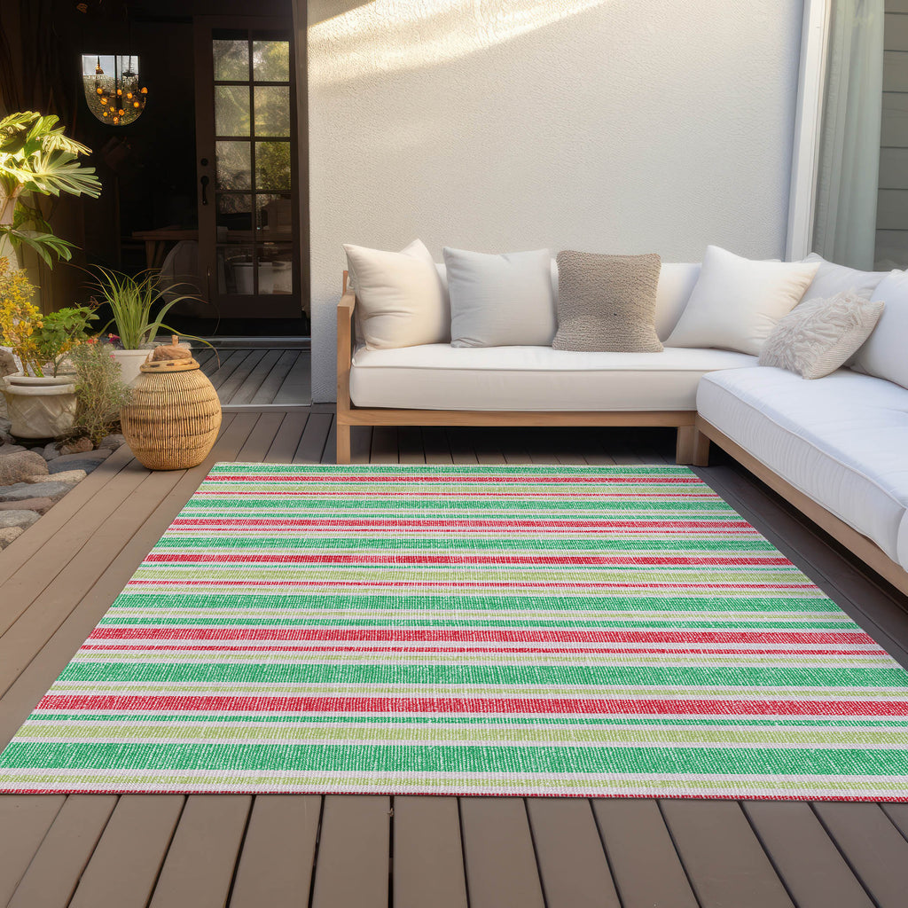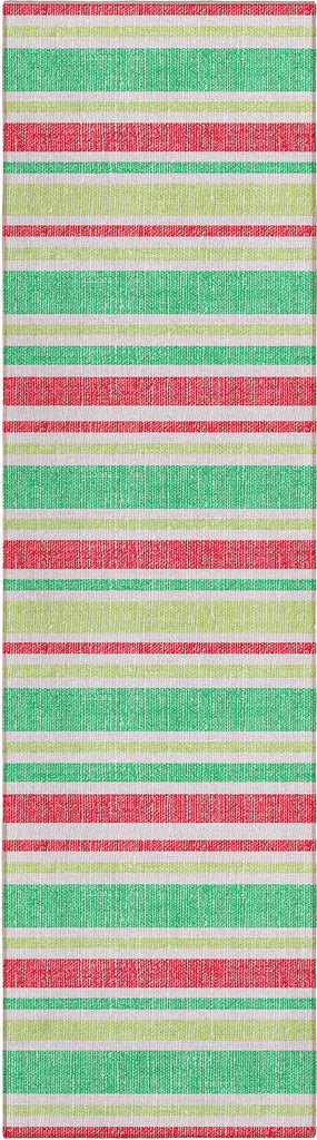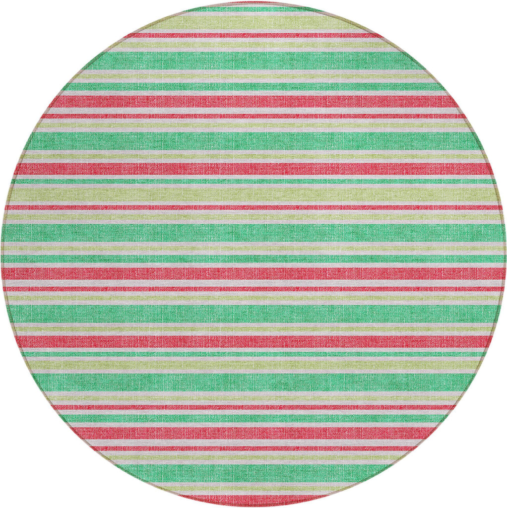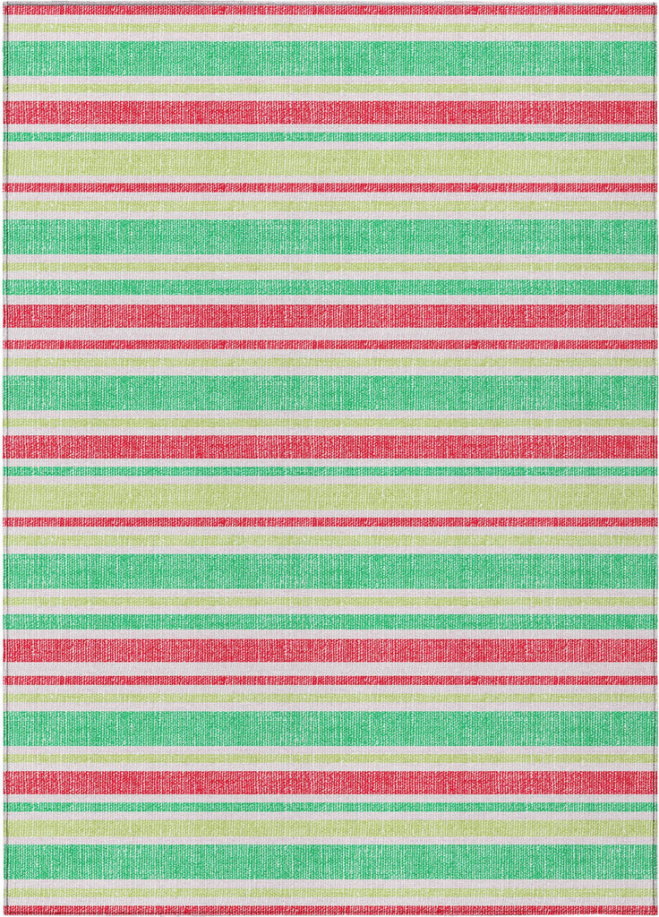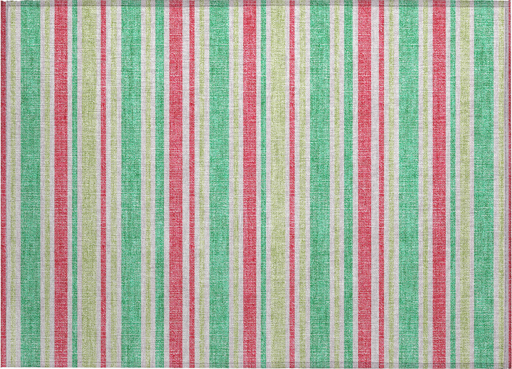 Elevate the style of your room with our area rug, boasting stripes that offer complementing colors to catch the eye and add energy to the space. This transitional striped rug seamlessly integrates into any decor. It is UV stabilized for indoor or outdoor use, and its ultra-thin construction with an incorporated non-skid backing ensures stability without the need for a separate rug pad. Machine-washable and family and pet-friendly, this rug combines practicality and versatility.