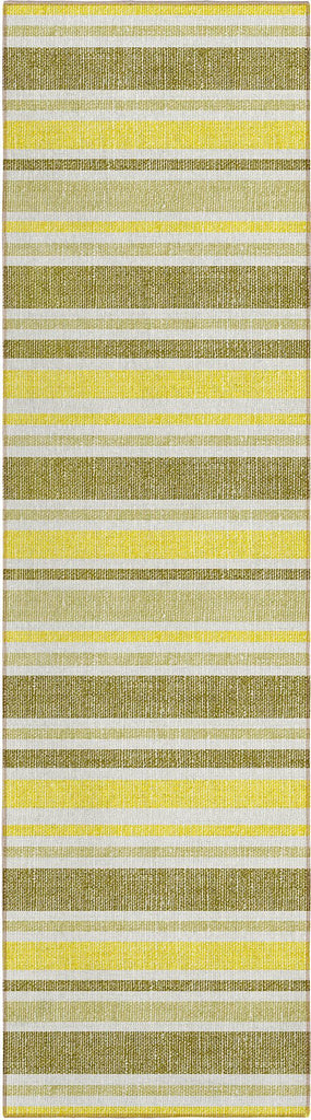 Elevate the style of your room with our area rug, boasting stripes that offer complementing colors to catch the eye and add energy to the space. This transitional striped rug seamlessly integrates into any decor. It is UV stabilized for indoor or outdoor use, and its ultra-thin construction with an incorporated non-skid backing ensures stability without the need for a separate rug pad. Machine-washable and family and pet-friendly, this rug combines practicality and versatility.