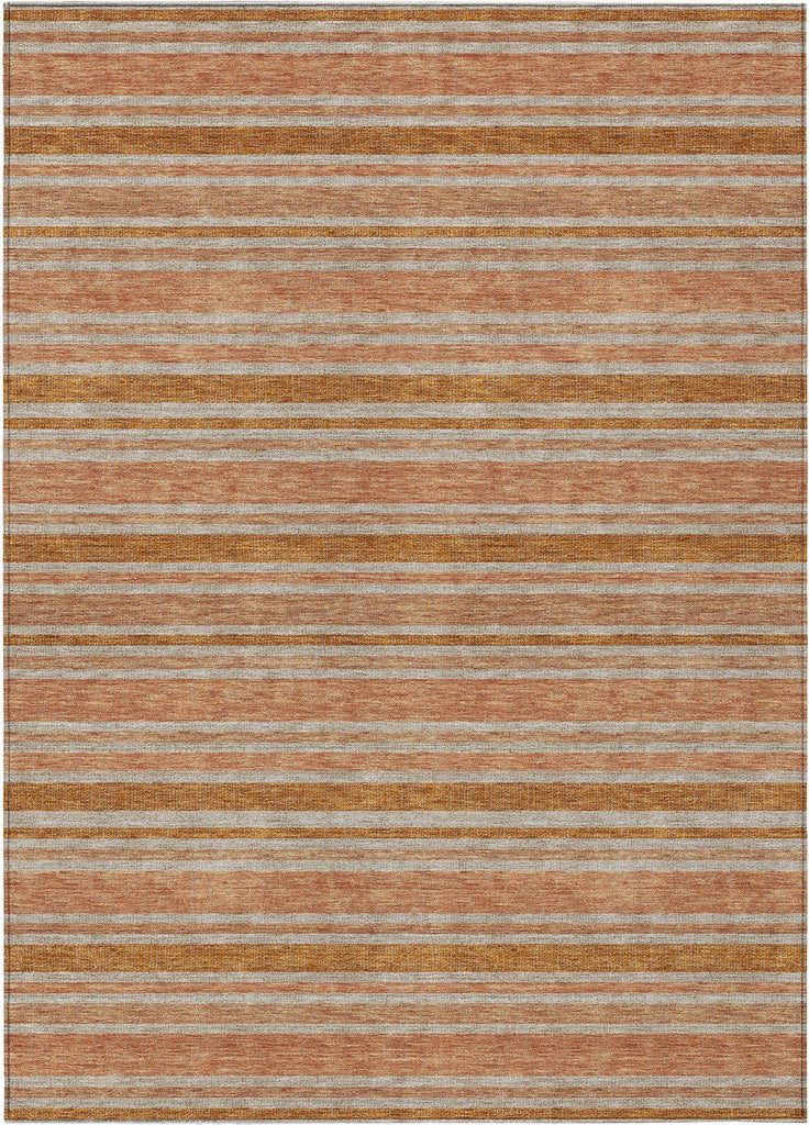 Elevate the style of your room with our area rug, boasting stripes that offer complementing colors to catch the eye and add energy to the space. This transitional striped rug seamlessly integrates into any decor. It is UV stabilized for indoor or outdoor use, and its ultra-thin construction with an incorporated non-skid backing ensures stability without the need for a separate rug pad. Machine-washable and family and pet-friendly, this rug combines practicality and versatility.