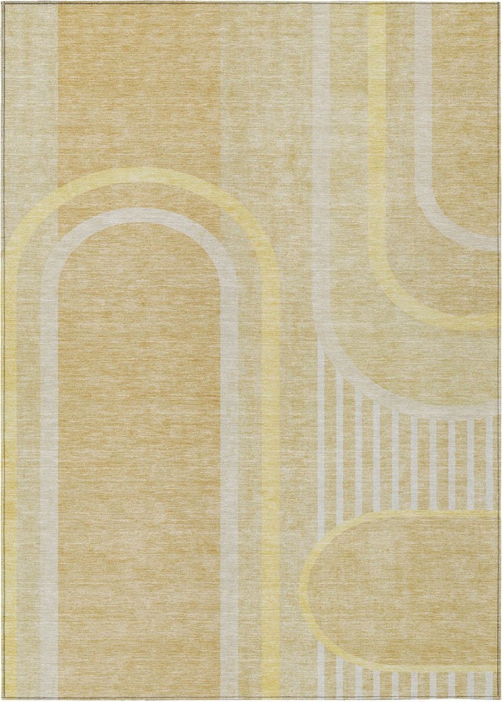 Elevate your home decor with our area rug inspired by transitional Art Deco designs, seamlessly blending geometric shapes for a modern and sophisticated look. This transitional Art Deco rug not only enhances the aesthetic appeal of your space but also offers practical benefits. It is UV stabilized for both indoor and outdoor use, ensuring its vibrant colors remain intact over time. The ultra-thin construction with an incorporated non-skid backing provides stability without the need for a separate rug pad, while its machine-washable feature makes cleaning a breeze. Family and pet-friendly, this rug is designed to withstand the demands of everyday life.