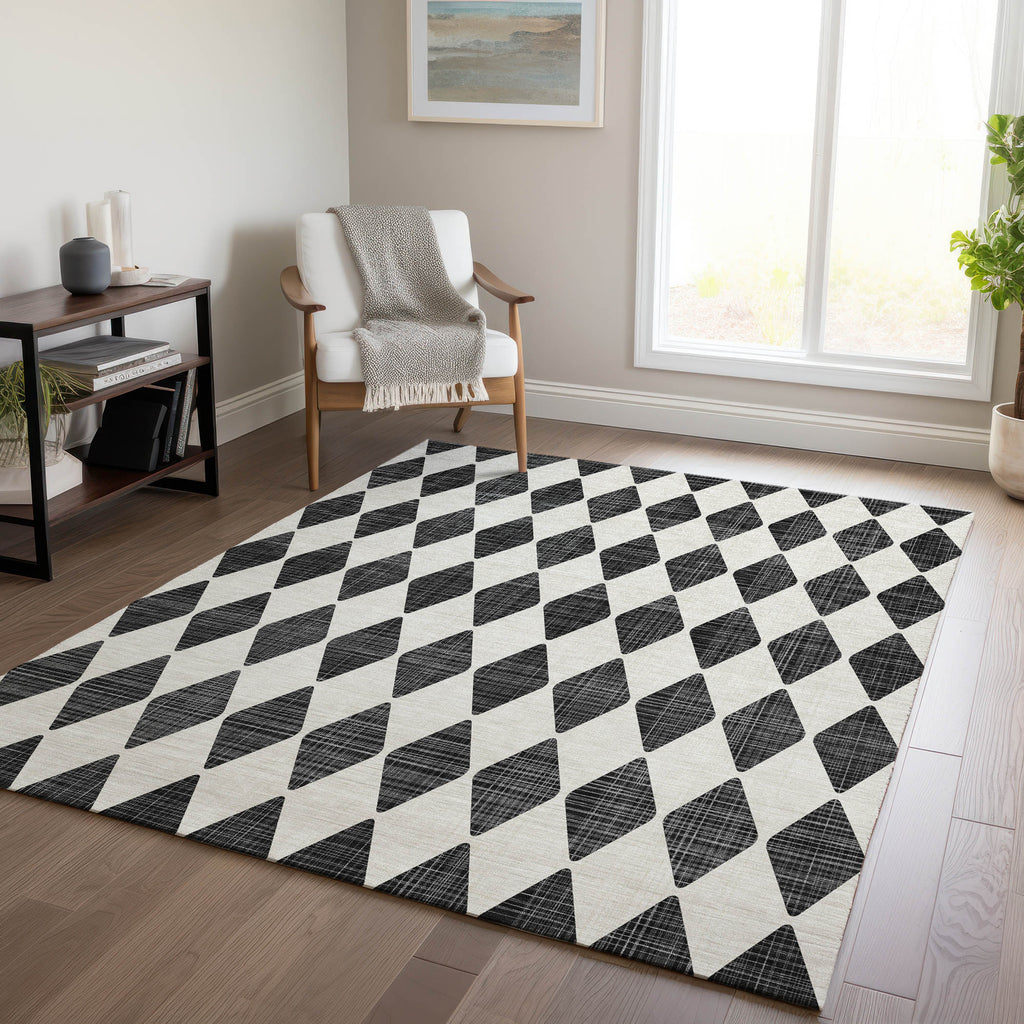 Introduce a touch of nostalgic elegance to your living space with our transitional area rug, adorned with vintage diamond motifs arranged in an argyle pattern. This rug bridges the gap between classic style and modern living. UV stabilized for use indoors or outdoors, its ultra-thin construction features a built-in non-skid backing that removes the need for an additional rug pad. Being machine-washable, it offers a family and pet-friendly option for easy maintenance.