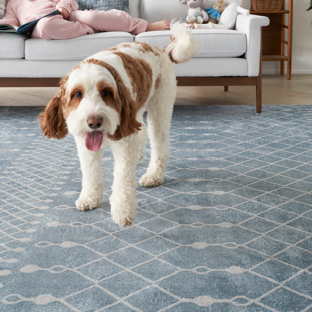 • Washable Moroccan trellis rug brings boho chic style to any room