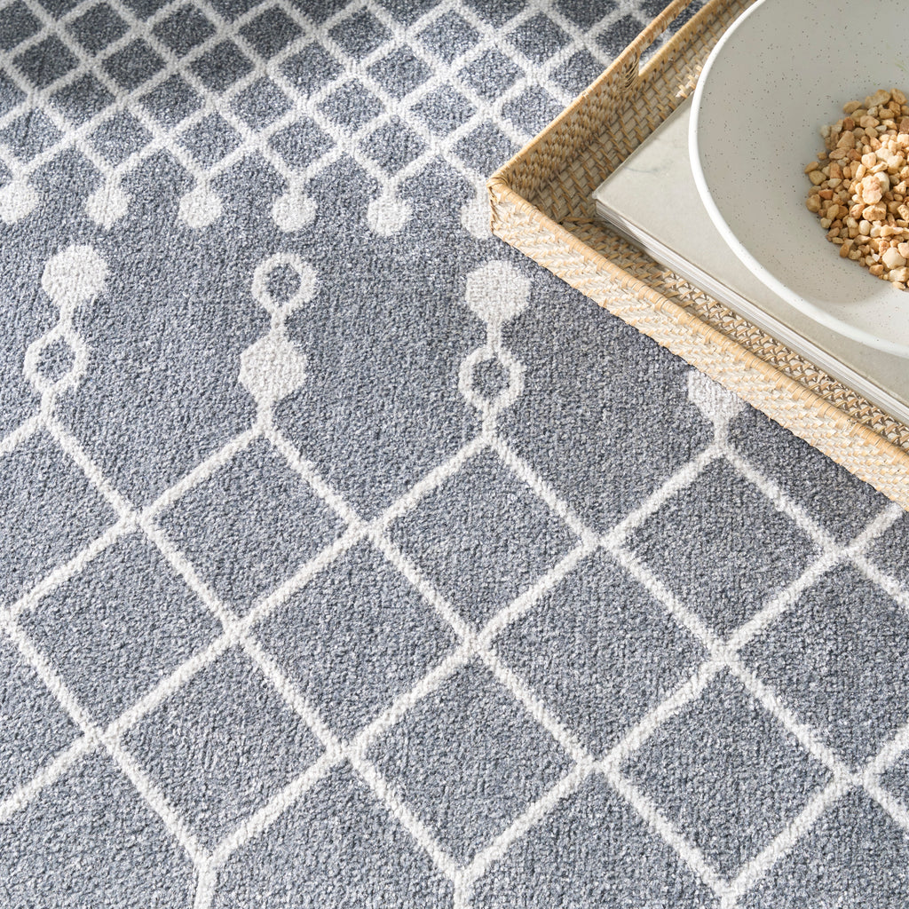 • Washable Moroccan trellis rug brings boho chic style to any room