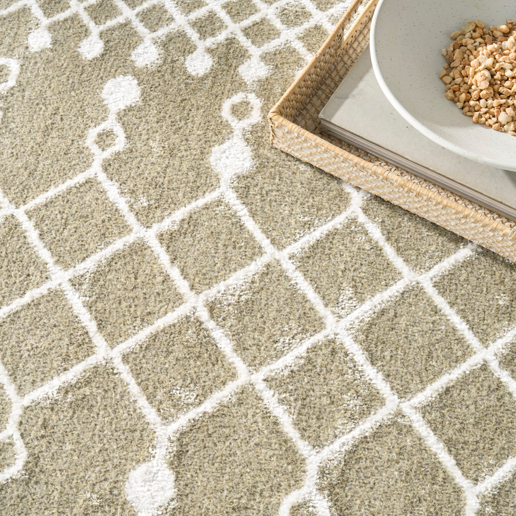 • Washable Moroccan trellis rug brings boho chic style to any room