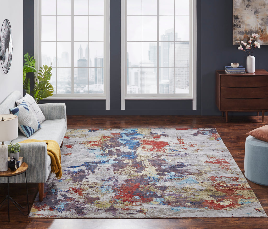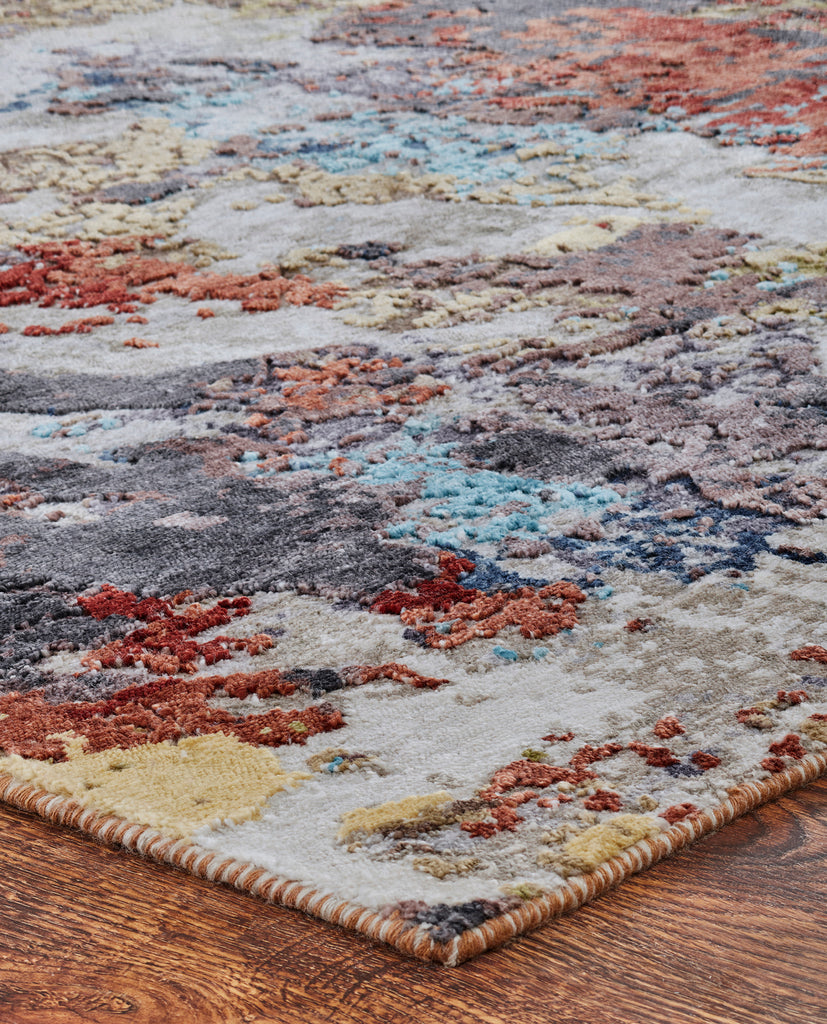 Each rug in the Jules collection is a modern abstract study in dimensional texture and high-energy explosions of color. All Jules rugs are hand knotted in a Tibetan knot weave using 100% Silkette, and specific designs within the collection have been hand carved to impart special high-low textural effects.