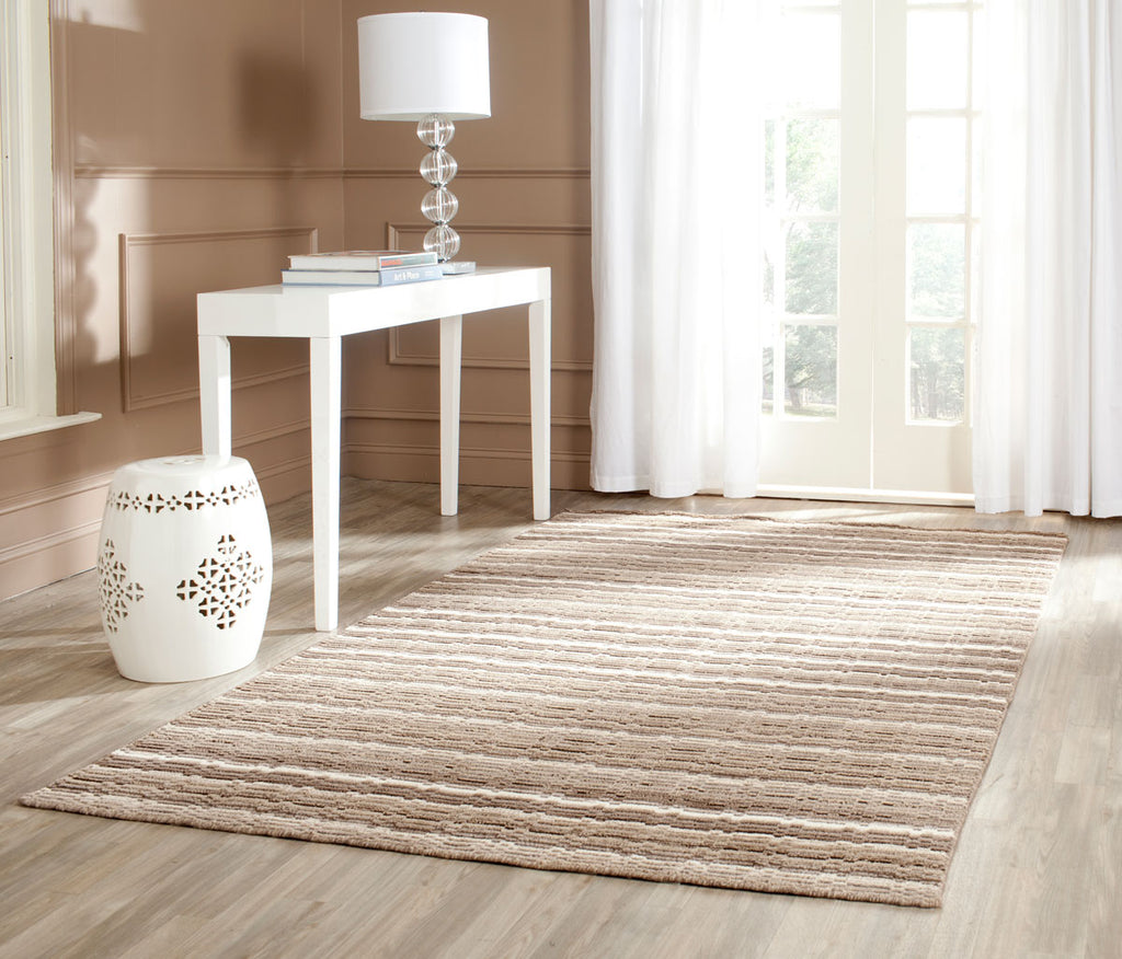 A modern solid design created with a dense pile of high quality wool is used to create this unique rug. The loomed construction provides a great look, feel and durability. Pile height is 0.25 inches. Cotton backing.